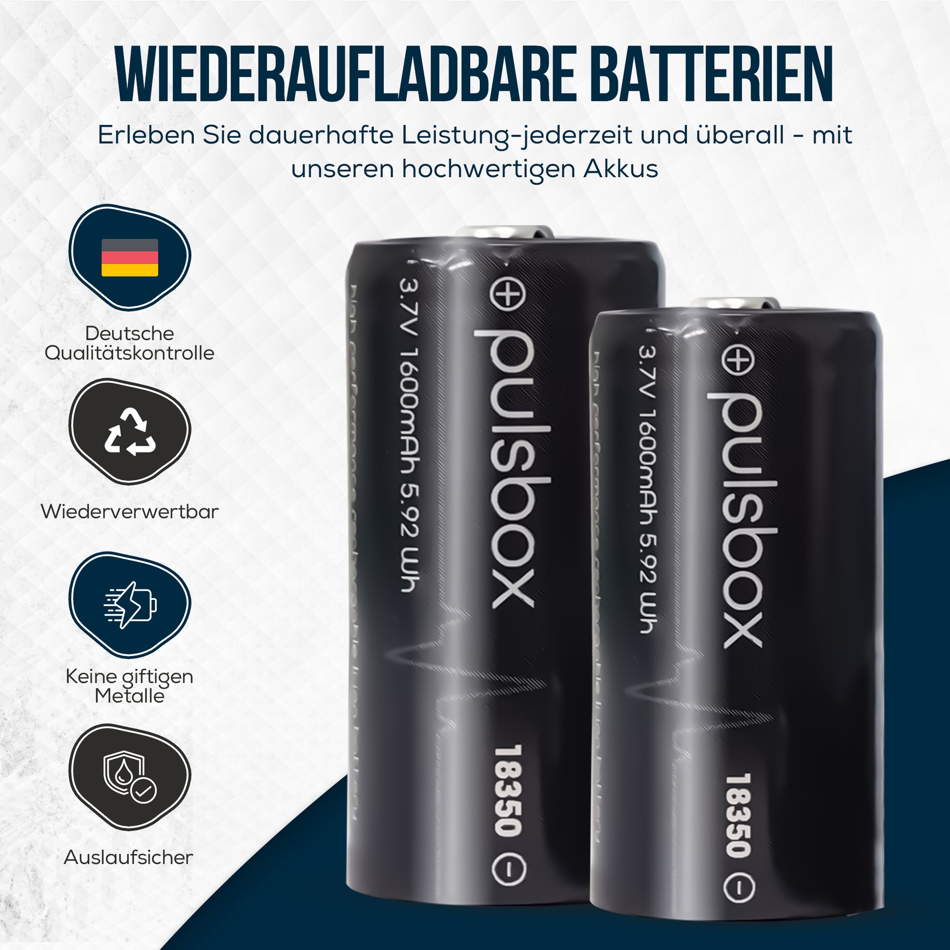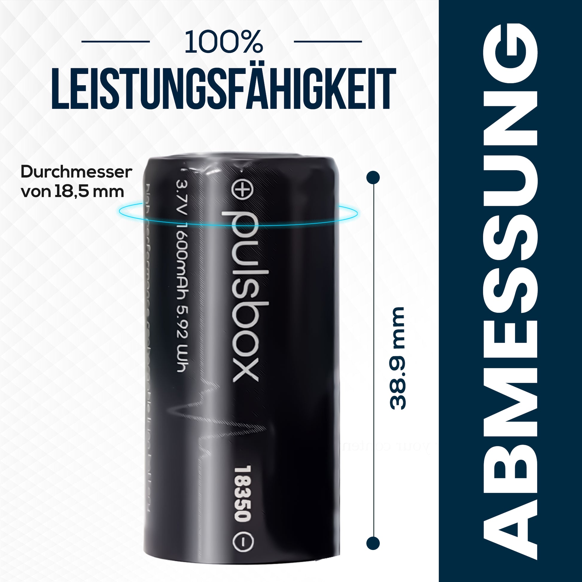 pulsbox 18350 | 18400 Li-Ion Akku 3,7V 1600mAh integrierte PCB-Schutzschaltung